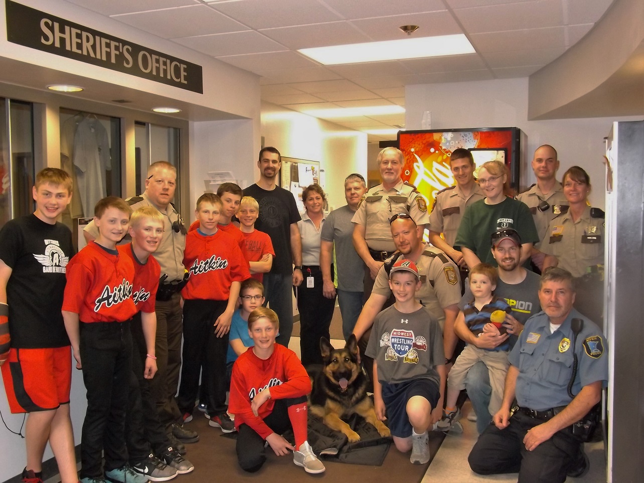The young people assembled cinch sacks filled with candy bars, lint rollers, sunblock, toothbrushes, water and other items. The officers received gift certificates from local restaurants and businesses. They also distributed 40 donated tickets from Three Bears Water and Theme Park for the officers' children. Even Loki, the K9, received a blanket with embroidery from a local store.