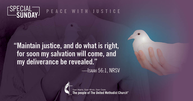 Today is Peace with Justice Sunday. This special day calls the church to advocate publicly in communities and nations throughout the world. The special offering, administered by the General Board of Church and Society, benefits peace with justice ministries at home and globally.