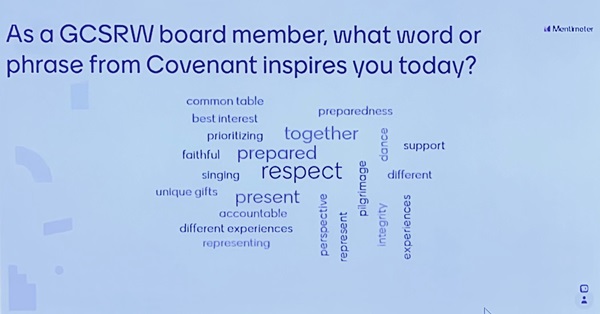 Each day, GCSRW centered attendees in reflection and prayer. Day one focused on Psalm 137, in which the rivers of Babylon remind us that God remains with us even through difficult times. Day two offered a challenge to the board to examine how to be a vessel for the work of women’s leadership and a conduit of equality for women in the world. A video of ministries celebrating women and women’s history month in Maputo, Mozambique was also presented by board member Hortência Americo Langa Bacela.