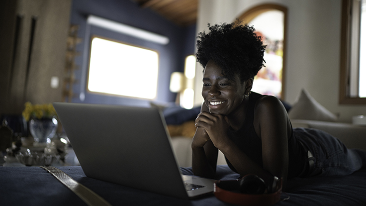 A woman watches a church worship service from home. Image by Prixel Creative, Lightstock.com.