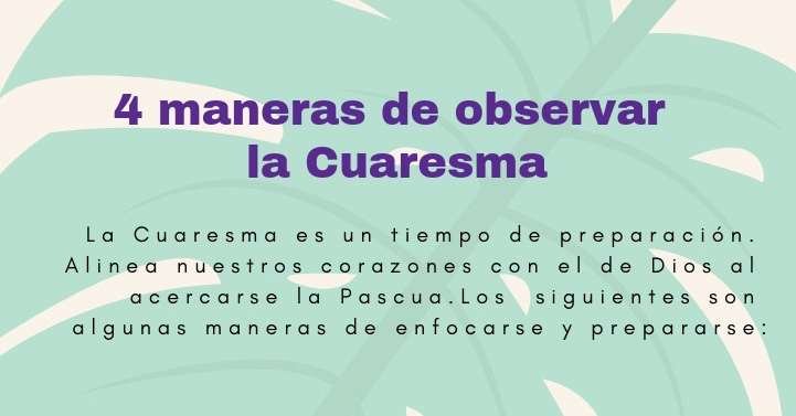 La Cuaresma es un tiempo de arrepentimiento, ayuno y preparación para la venida de la Pascua. Es un tiempo de autoexamen y reflexión. Encuentre devocionales, actividades para las familias e información sobre nuestra fe para la observancia de la Cuaresma. Si hay algún recurso que le gustaría compartir con la conexión metodista, envíenos un correo electrónico haciendo clic en el botón de abajo.