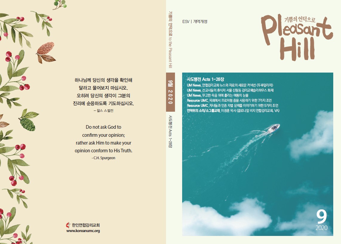 <기쁨의 언덕으로> 9월호에는 한 달간 통독할 사도행전 1~28장 그에 대한 묵상자료, 그리고 소그룹 혹은 속회 모임에 사용할 수 있는 5 회에 걸친 소그룹 교재가 포함되어 있습니다. 인도자용 소그룹 교재는 아래의 인도자용 소그룹 교재 링크를 누르고 다운 받으면 됩니다.